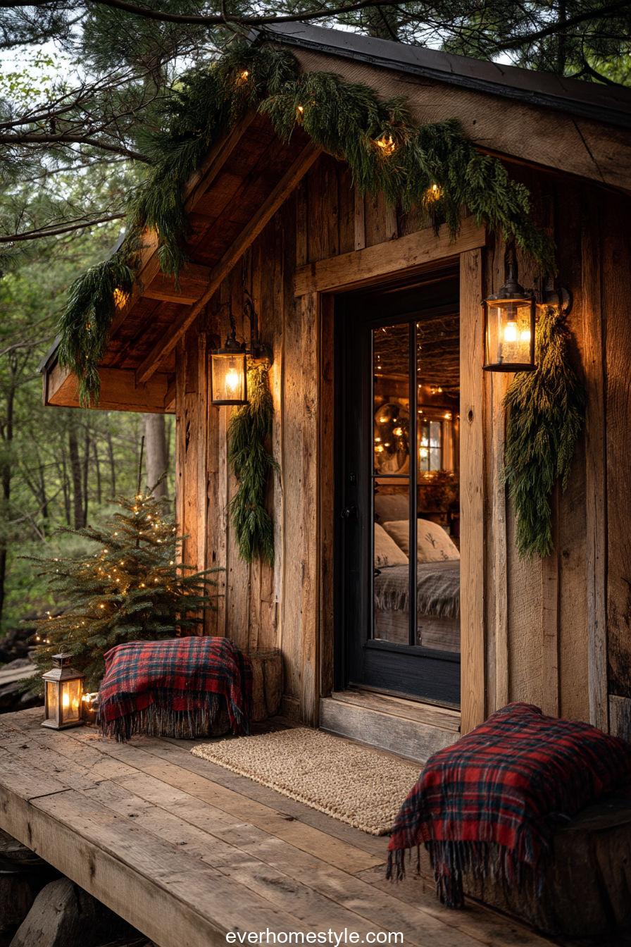 Nestled in the woods, this cabin glows with pine garlands and candle lanterns. It radiates natural warmth that embodies mountain serenity.