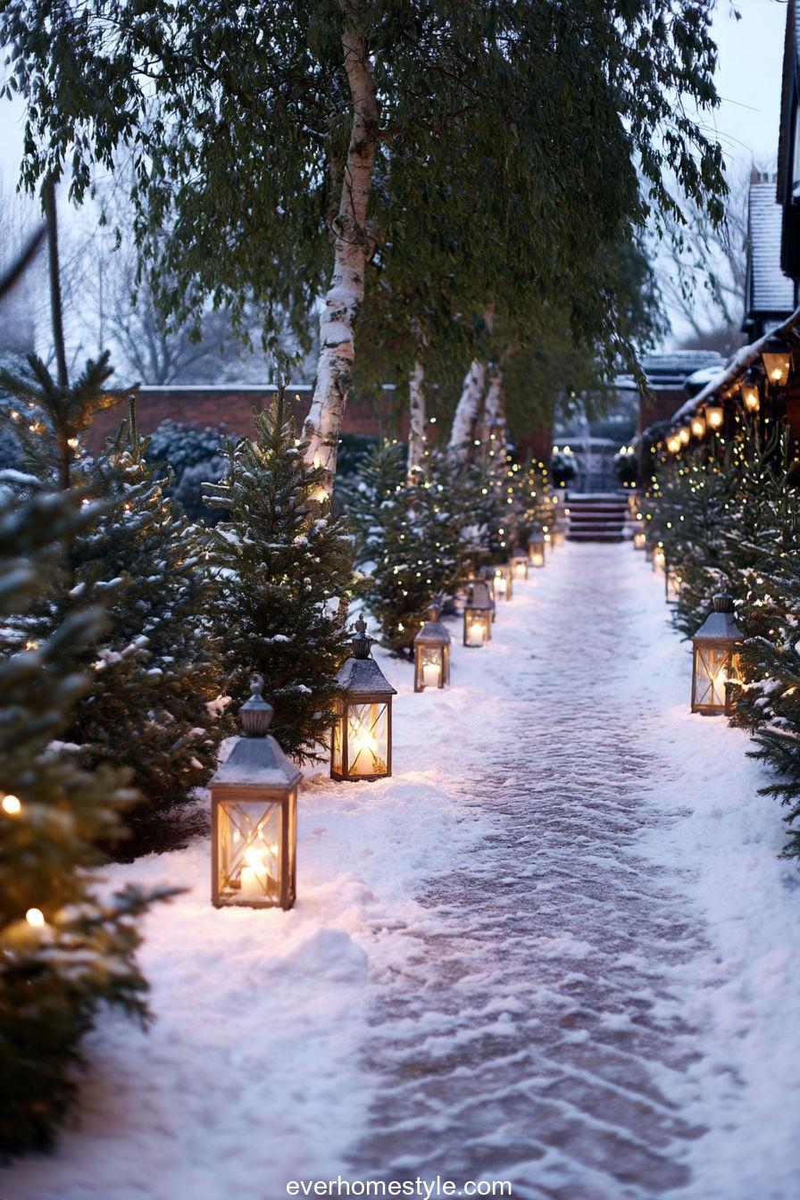 Your walkway becomes a glowing wonderland when lined with mini trees and flickering lanterns, guiding guests in style.